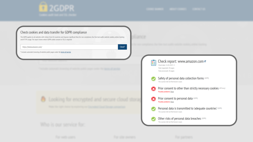 Как проверить настройку? Зайдите на сайт, который проверяет ресурсы на соответствие GDPR (Общему регламенту по защите данных). Далее вставьте ссылку на ваш сайт и нажмите check, а дальше остается подождать отчет.