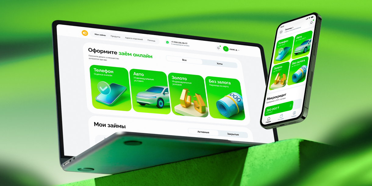 За 4 месяцев мы собрали MVP, а ещё через 7 месяцев запустили стабильную и масштабируемую платформу: мобильное приложение под iOS и Android, сайт с личным кабинетом и мощную админ-панель для управления заявками. Всё это с адаптацией под рынок Казахстана, интеграцией местных вендоров (включая BrainySoft и Aitu) и поддержкой четырёх видов займов — от беззалоговых до автоломбарда.