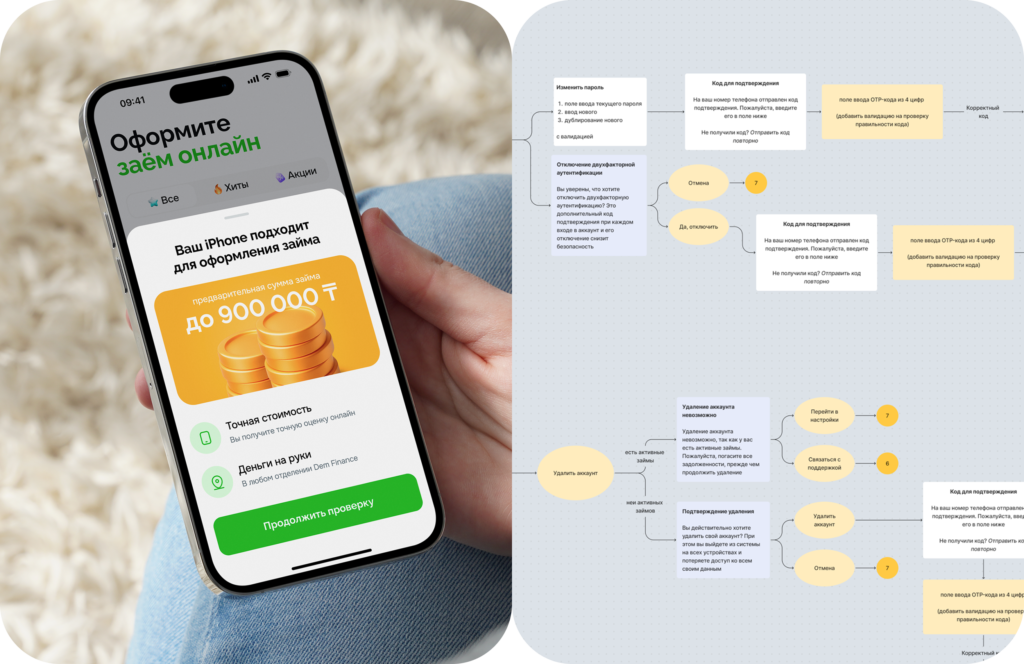 Dem Finance пошли иначе — с первого дня заложили настоящую цифру: подписание документов онлайн, подтверждение личности без визитов, деньги сразу на карту, статусы, которые обновляются в реальном времени. И бесшовный переход между приложением на телефоне и личным кабинетом на сайте.